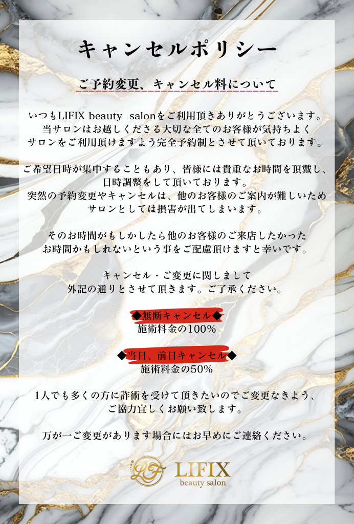 お越し頂いているお客様皆様に気持ち良くご利用頂きたいので、キャンセルポリシーの必読お願い致します🥺